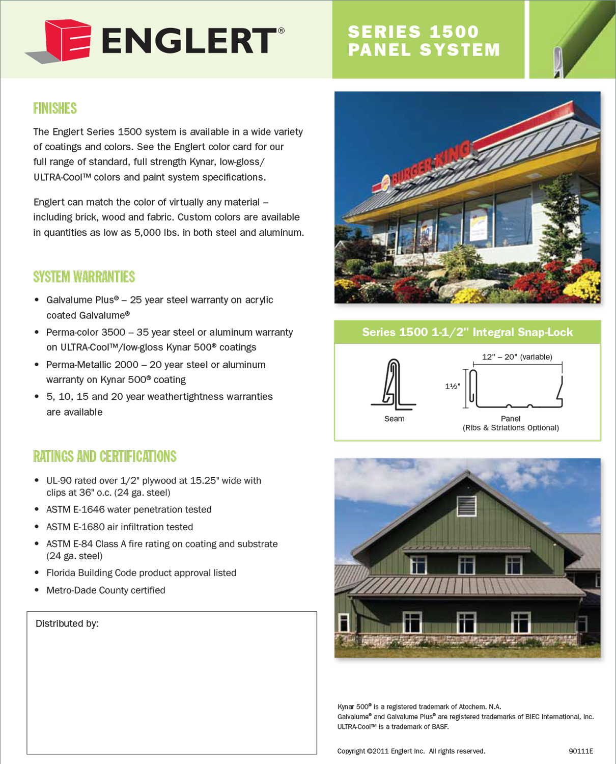 The Englert Series 1500 integral snap lock panel system combines architectural versatility – with cleanly detailed, continuous seam transitions from roof to mansard, fascia, wall panel or soffit.